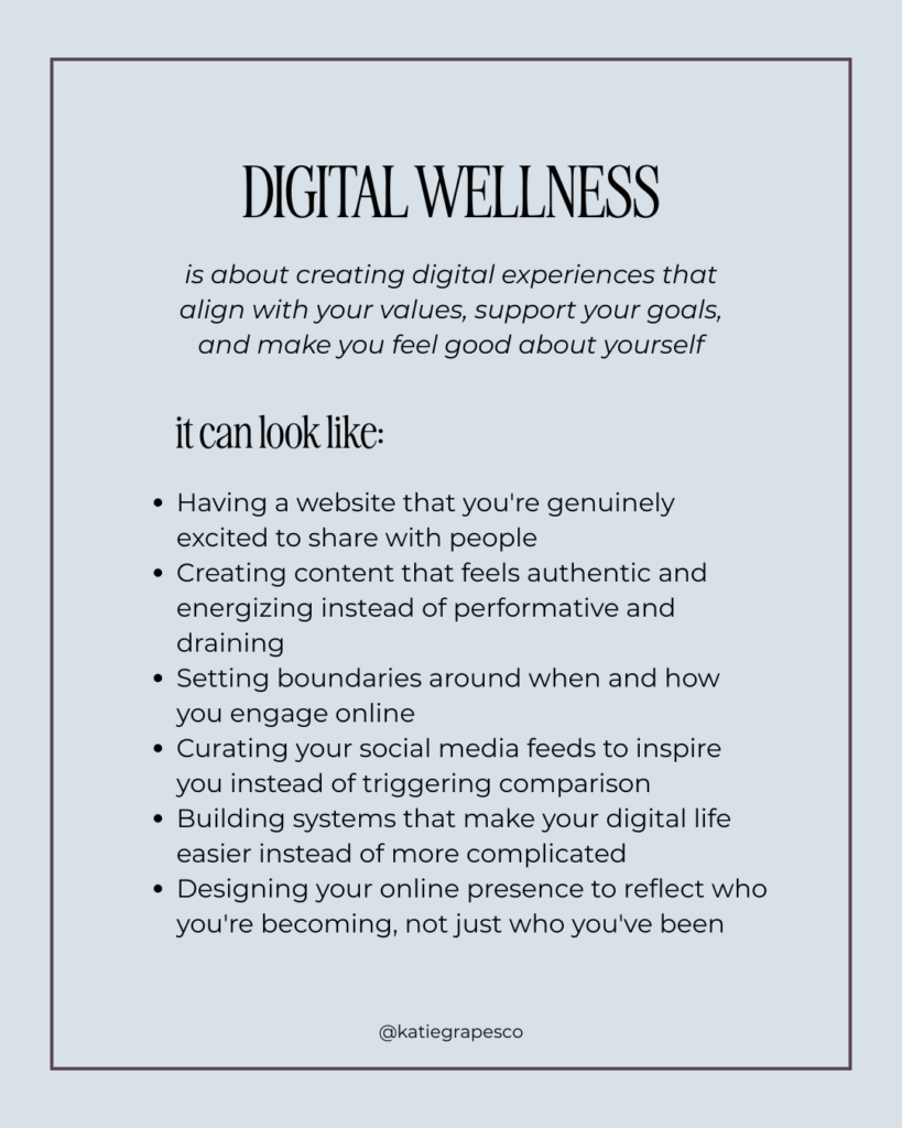Digital wellness isn’t just about having a nice website or a cohesive Instagram feed. It’s about creating alignment between your digital life and your actual life. And that alignment? That’s what creates the sense of integrity and wholeness that makes life feel really, really good.